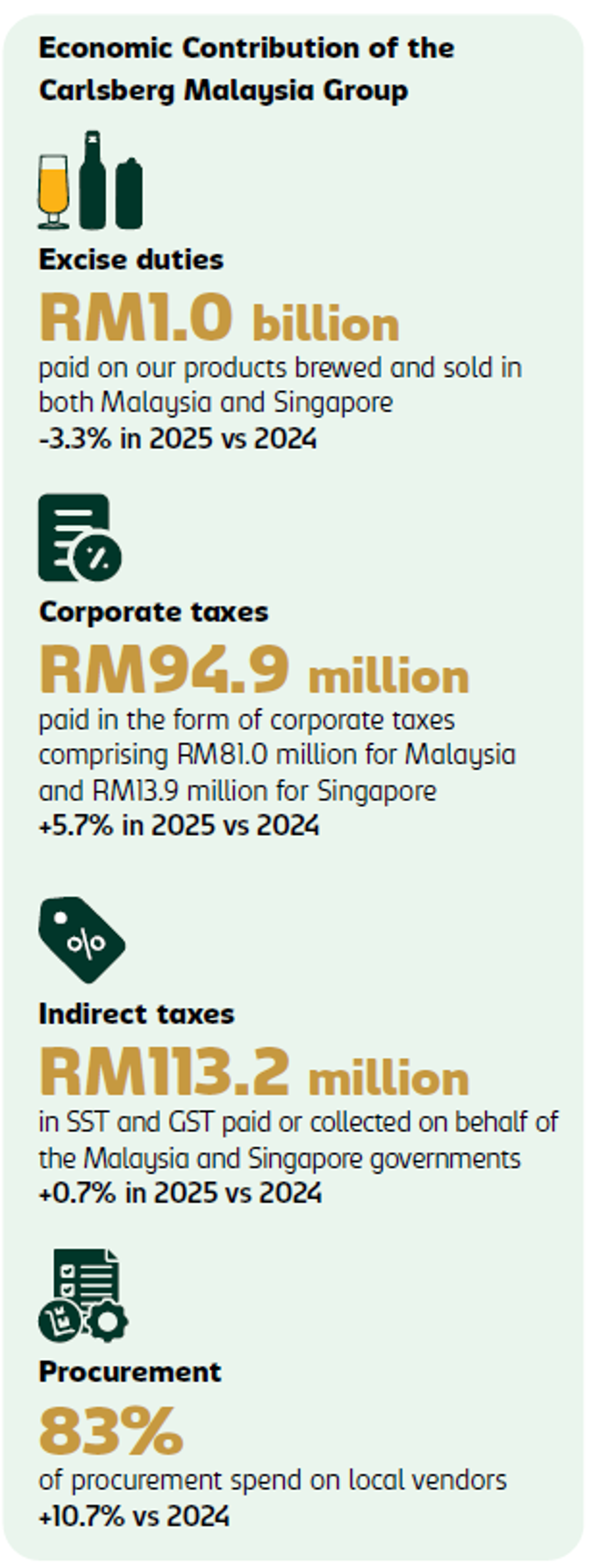 Our contribution to society extends beyond delivering enjoyment to consumers. It encompasses economic value creation, employment generation and meaningful community engagement across Malaysia and Singapore.
