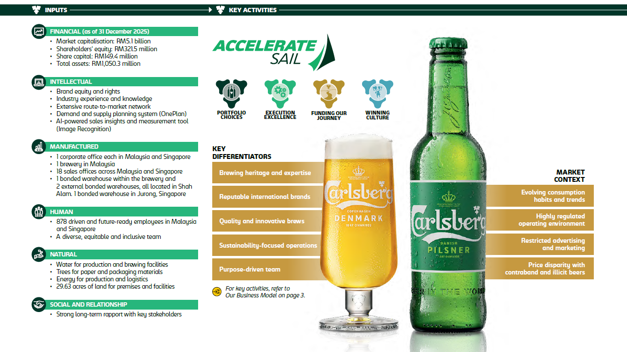 The Carlsberg Malaysia Group is guided by the International Integrated Reporting Council (IIRC) framework of the Value Reporting Foundation (VRF) when preparing this section on Value Creation. We made responsible choices and decisions in capital allocations to deliver on our Accelerate SAIL corporate strategy, creating and preserving value for our key stakeholders, as aligned with our pledge towards the UN Sustainable Development Goals (UN SDGs).