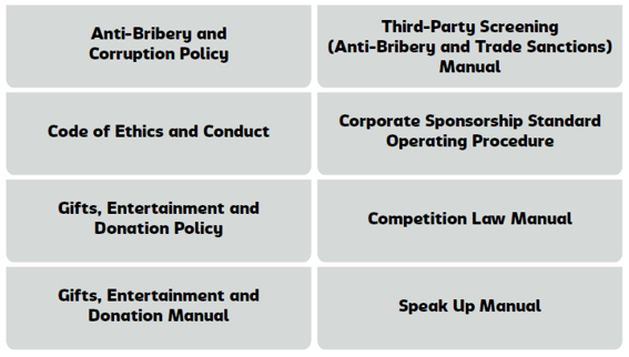 We based our approach to anti-bribery, corruption and competition on the following frameworks, policies, guidelines and procedures: